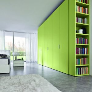 Ντουλάπα με συρόμενες πόρτες βαρέου τύπου σε λάκα ματ με τζάμι λακοπέλ διαφορετικού χρώματος