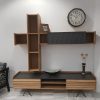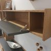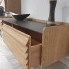 Σύνθεση μοντέρνα από φυσικό ξύλο δρυς με λεπτομέρειες λάκας ματ και λεπτομέρειες στα συρτάρια τύπου πατζουριού